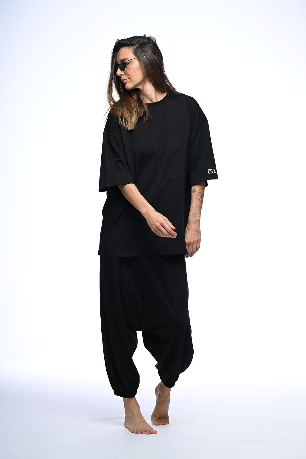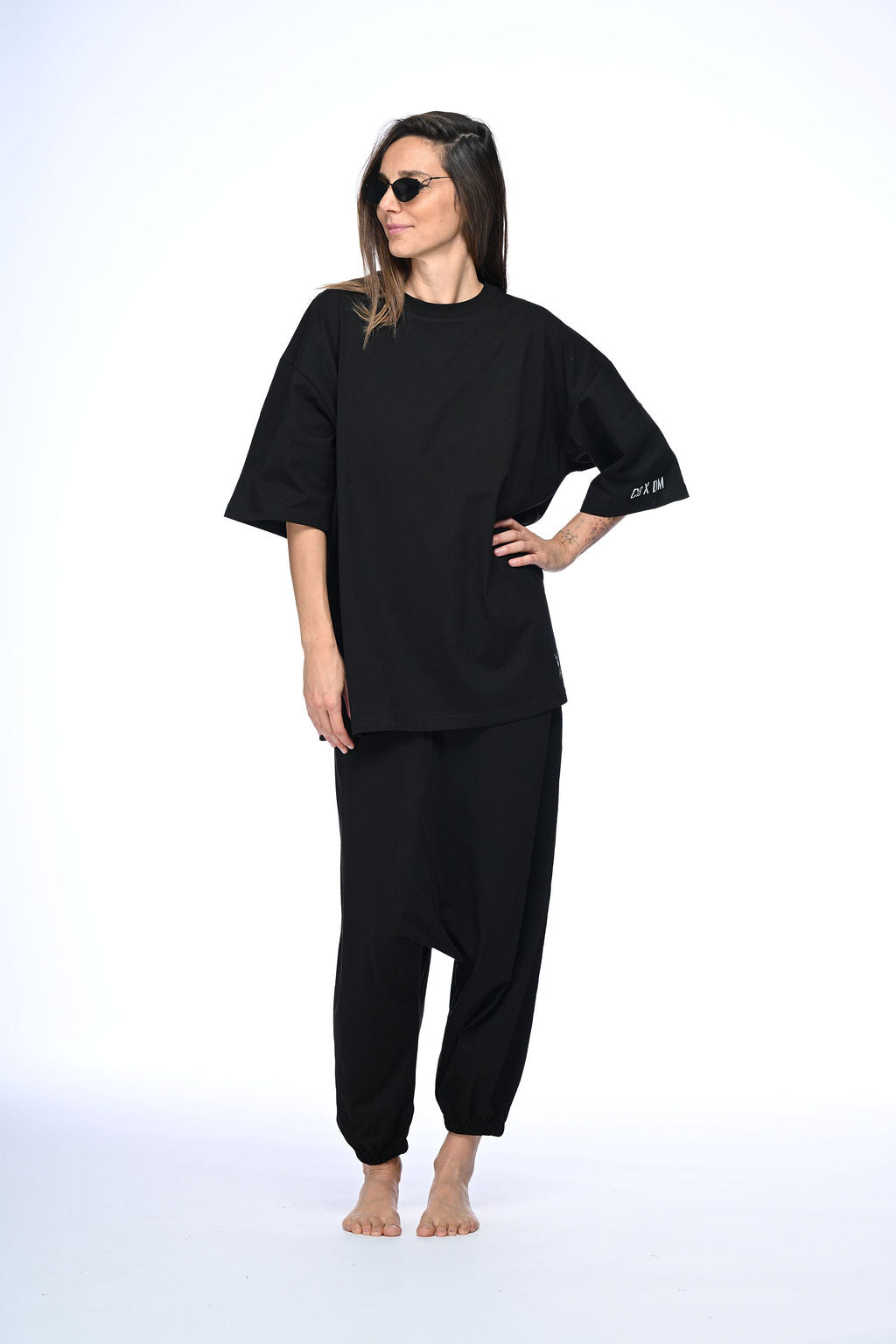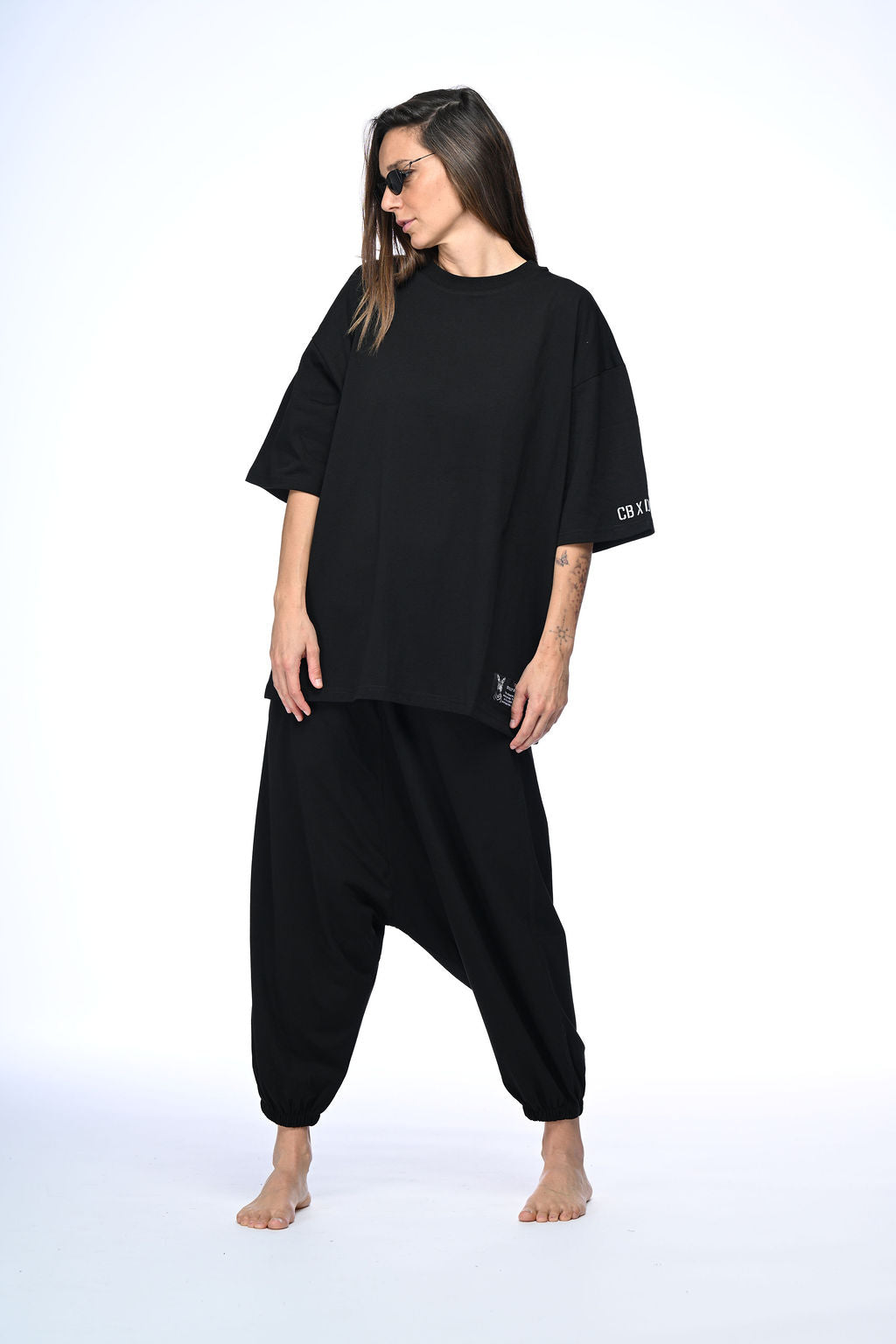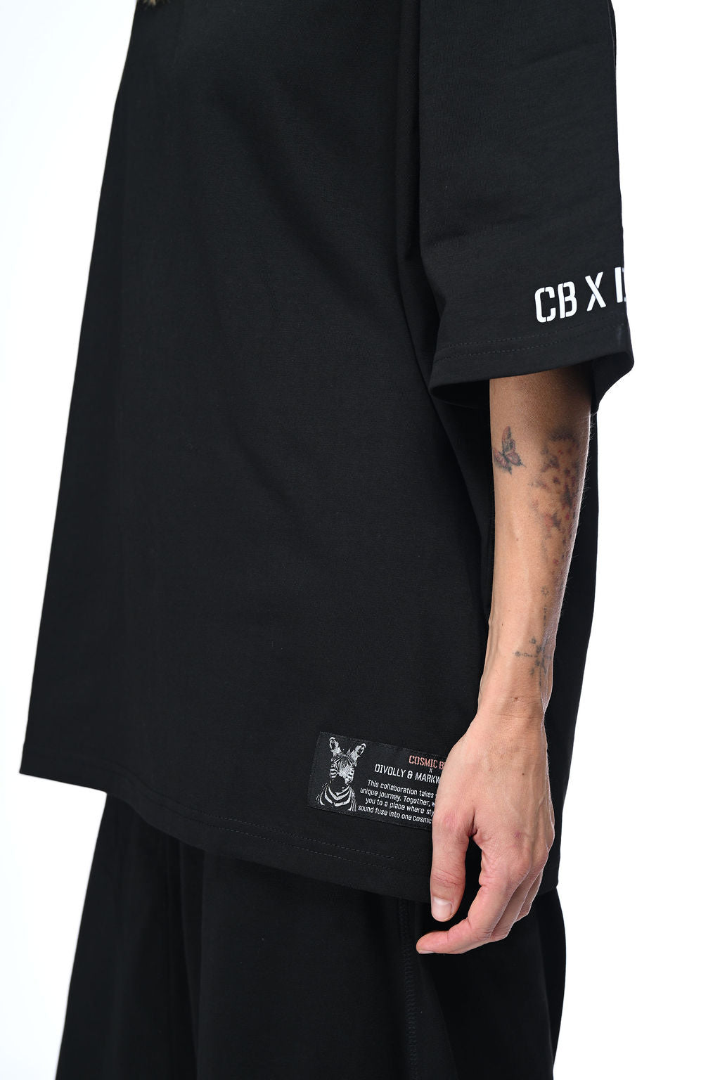This oversized black unisex t-shirt showcases a unique print that connects motherland roots with cosmic vibrations, complemented by a distinctive zebra patch. It represents a creative collaboration between Divolly & Markward and Cosmic Bejb, where style and sound fuse into a seamless cosmic flow. Designed for those who appreciate meaningful fashion with an artistic edge.